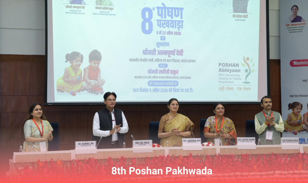 The 8th Poshan Pakhwada 2026 was inaugurated by Hon’ble Minister, MWCD, Smt. Annapurna Devi, in the presence of Hon’ble MoS, Smt. Savitri Thakur, spotlighting early childhood brain development as the key to a brighter future